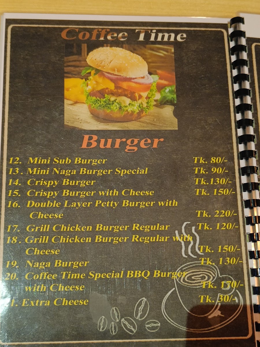 The menu also includes some bold and exciting items like the Nachos Supreme and Naga Nachos, each offering a deliciously spiced experience. If you're craving something sweet, the Cookie Crusher Chocolate Cold Coffee is a unique option that combines dessert with a coffee kick. Every dish is thoughtfully crafted, offering a satisfying blend of flavors that will make any visit to Coffee Time - Faridpur a delightful experience.